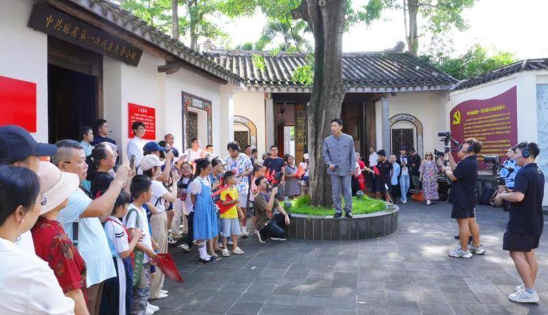 假日文化游同样魅力独具。中共琼崖一大旧址推出的沉浸式实景演出《琼崖的光辉 人民的胜利》,吸引了众多游客驻足观看。演出通过六大历史篇章、实景还原与零距离互动,与观众共同穿越百年琼崖革命史,见证了从“五四”风雷到海南解放的峥嵘岁月。