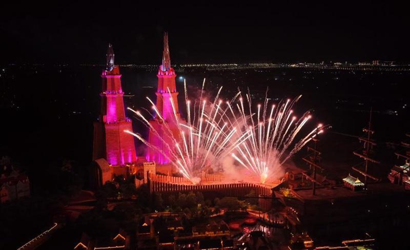 海南长影奇幻乐园上演音乐烟花秀。海口旅文局供图