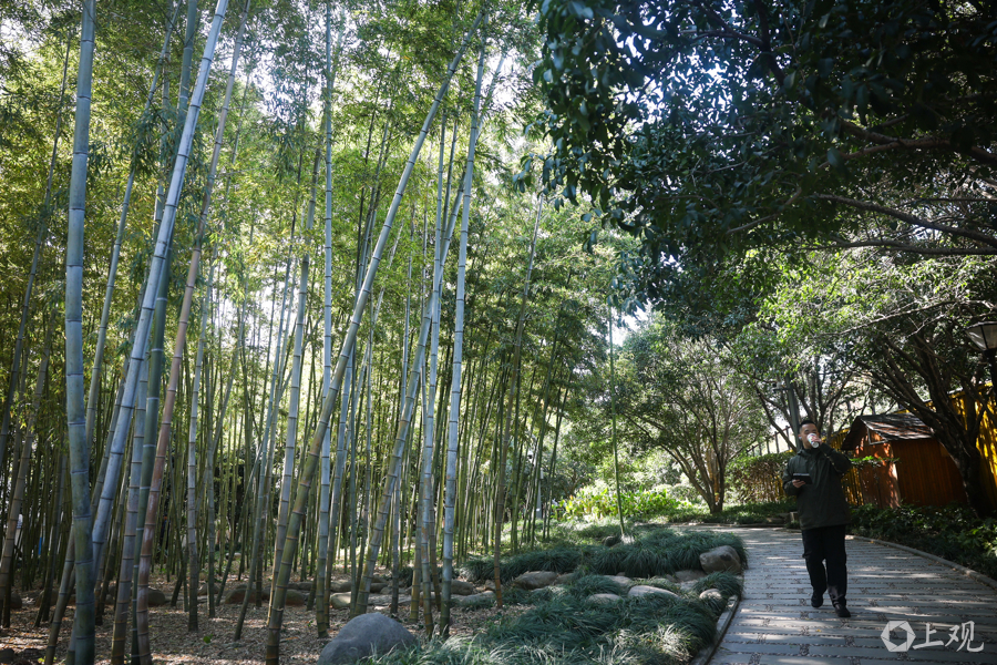 午休时分,附近上班族与居民纷纷前来散步,在竹林小径、明代城墙遗址旁漫步休憩,感受历史与现代交融的独特氛围。